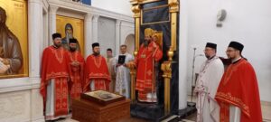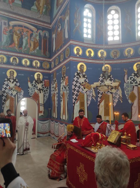 Лепоти божанске службе допринели су храмовни хор и појац Иван Трајковић. Верујући народ који је у потпуности испунио овај велелепни храм имао је прилику да изнова чује речи свог пастира Владике Јустина који је нагласио: