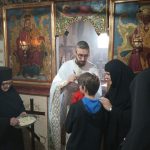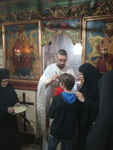 У овом  манастиру из XV века, присуствовали смо Светој Литургији, коју је служио о. Миломир Радић заједно са протојерејем Милорадом Милидрагом. Сестринство нас је  примило у духу манастирског гостољубља. Након доручка, мати Јелисавета нам је из манастирске библиотеке изнела и показала две веома значајне књиге: Каранско јеванђеље, рукопис с почетка 17. века и фототипско издање Мирослављевог јеванђеља (12. век). Ове две најважније писане драгоцености у манастиру оставиле су врло снажан утисак на ученике, који су постављали бројна питања и по благослову игуманије правили бројне фотографије.