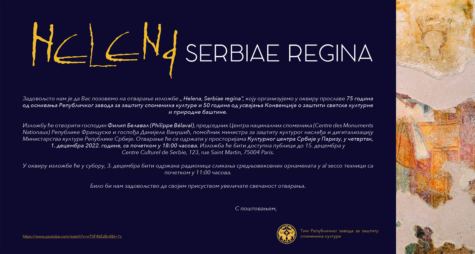 Најава: 01-15. децембар 2022: Изложба „Јелена, велика краљица“ у Паризу