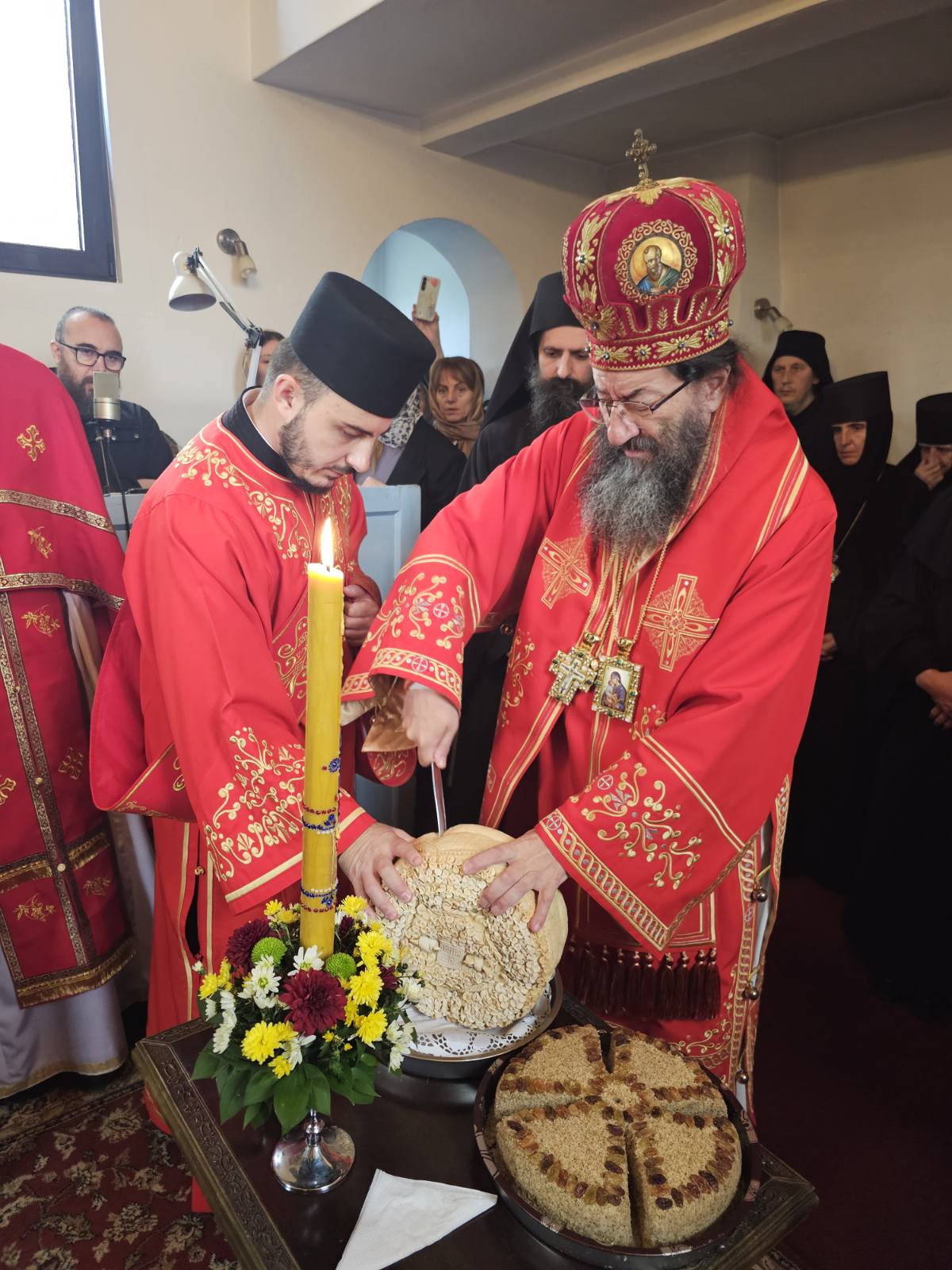 Као пилићи око мајке сабрали су се монаси, гости згодачичког братства, да заједно са својим Митрополитом Јустином и верним народом прославе Димитрија Мироточца. Светом Архијерејском Литургијом началствовао је Његово Високопреосвештенство Архиепископ и Митрополит жички Г. Јустин, а саслуживали су му архимандрит Дамјан (Цветковић), настојатељ Манастира Увца протосинђел Урош (Васиљевић), сабрат Манастира Преображења јеромонах Иларион (Богићевић), сабрат Манастира Рујан јеромонах Пантелејмон (Дивљаковић), старешина Цркве у Чукојевцу протојереј Жељко Филиповић, протојереј Владимир Стефановић, парох Покровске цркве у Ужицу, као и архијерејски протођакон Стефан Симић. Део литургијског сабрања чинили су: игуманија Манстира Каменац мати Марина са сестринством, игуманија Манастира Вољавче мати Теодора са сестринством, игуманија Манастира Ковиља мати Аквилина са сестринством, јеромонах Авакум (Прокић), сабрат Манастира Вујан, братство Манастира Рача и сестринство Манастира Сретења. Лепоти богослужења допринели су протопсалт Иван Трајковић и Теодора Зеленовић са делом хора Светог Владике Николаја Жичког.