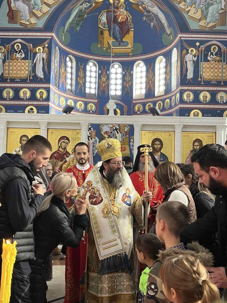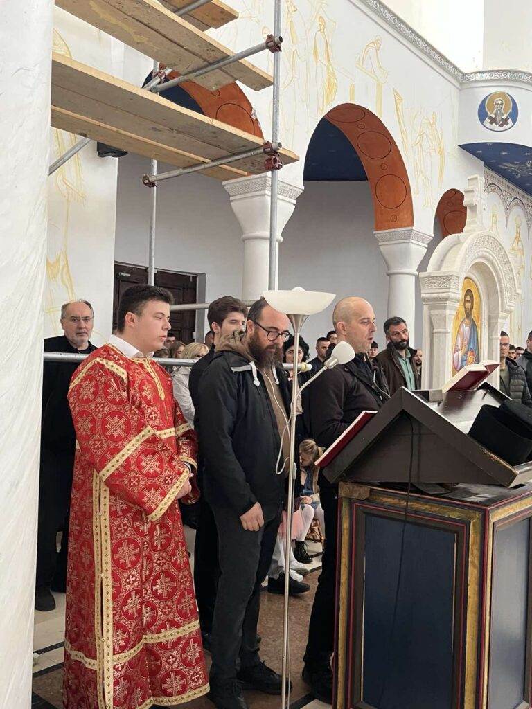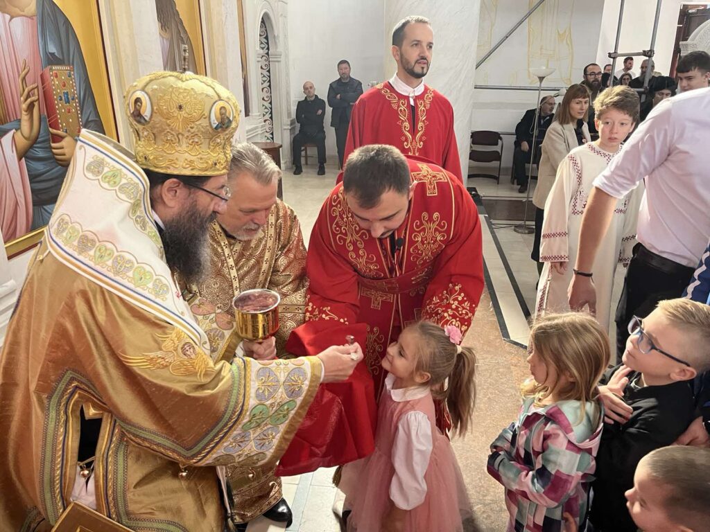 Лепоти и молитвеном току богослужења допринели су својим складним појањем протопсалт г. Иван Трајковић и хор Саборног храма Светог Саве. Митрополит Јустин је беседио на тему прочитаног јеванђелског зачала. Мноштво народа и деце причестили су се Светим Тајнама Христовим.