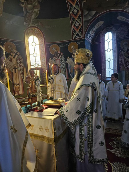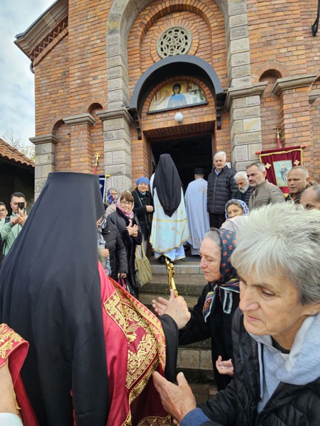 Митрополит је затим говорио о лику Преподобне мати Параскеве као истинског сведока Васкрслога Христа. Она је, као једна од пет мудрих девојака, све што је имала – младост, лепоту и живот – предала Господу, тражећи савршенство у смирењу и чистоти. Оставивши свет и богатство својих родитеља, повукла се у пустињу, где је живела у молитви и посту усавршавајући се у врлинама и молитвеном сећању на Бога. Владика је подсетио да мошти Свете Параскеве, које су чудотворне и нетљене, вековима изливају благодат на све који им са вером приступају, као живи знак Божијег присуства међу људима. Бог је прославио слуге своје, и преко њих се јавља Његова сила и љубав – рекао је Митрополит, благословивши све сабране да молитвама Свете Параскеве остану у светлости Христовој и у истини Јеванђеља.