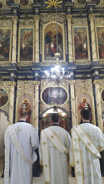 На литургијском сабрању, Његовом Преосвештенству саслуживали су секретар ЕУО-а архимандрит Дамјан (Цветковић), Архијерејски намесник жички протојереј Саша Ковачевић, старешина Храма Светог Василија Острошког на Берановцу протојереј Иван Радовановић, старешина Храма Светог Саве у Краљеву протојереј Радоја Сандо, старешина Храма Свете Тројице у Краљеву протонамесник Мирољуб Попадић, протојереј-ставрофор Јован Ђорем, протојереј Миломир Радић, јереј Радован Парезановић, јереј Ивица Тадић, јереј Владимир Јовановић, протођакон Милутин Балтић, ђакони Стефан Симић и Горан Вучковић.