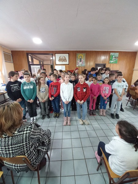 Наши најмлађи ученици певали су први дивну песму ,,Кажи мени ђаче, учениче“. После њих ученици другог, трећег и четвртог разреда, такође су празничним песмама о Божићу и Православљу обогатили програм. Ђаци петаци су својим шалама насмејали публику. Ученици шестог разреда извели су скеч ,,Човек без среће“ са јасном поруком да срећу треба тражити у раду, реду, умерености и вери. Да наши ученици воле да глуме и то веома успешно, доказали су и ученици седмог и осмог разреда који су приказали савремено доба, трку човека са временом и последице тога. Опоменули су својим скечом присутне госте да су родитељи и породица најважнији и да увек морамо имати времена за њих. На овај начин, ученици су својим ангажовањем показали своје таленте и способности, кроз текстове које су певали, казивали и глумили учили су се правим животним вредностима и јачали веру, а присутнима су пренели снажне поруке: Деца су наше највеће богатство. Породица је светиња и стуб сваког друштва.