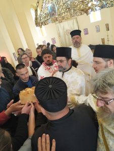 После Свете Литургије домаћини славе заједно са својим свештеником протојерејем Богољубом Симеуновићем уготовили су славску трпезу за све присутне.