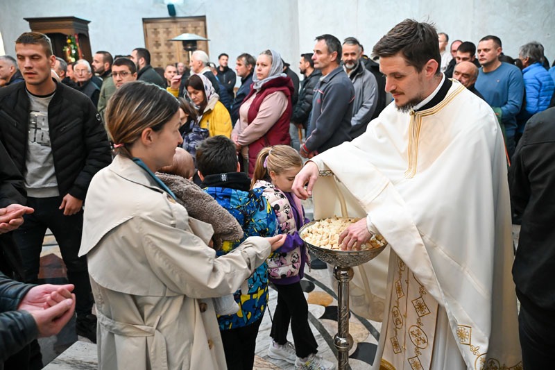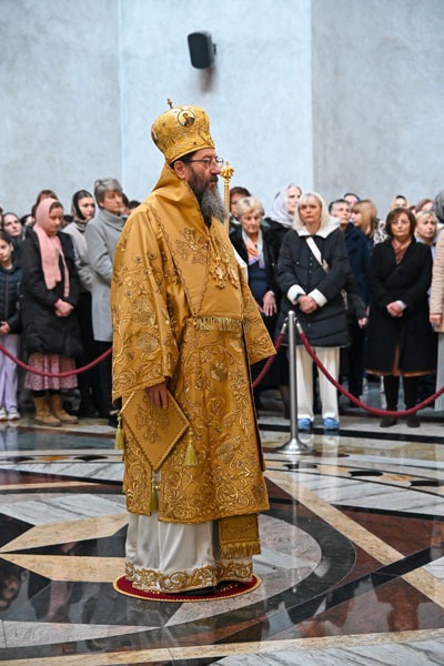 Након прочитаног одељка из Светог Јеванђеља Архипастир нам се обратио поучном беседом. По завршетку Свете Литургије уприличено је послужење за све сабране вернике.