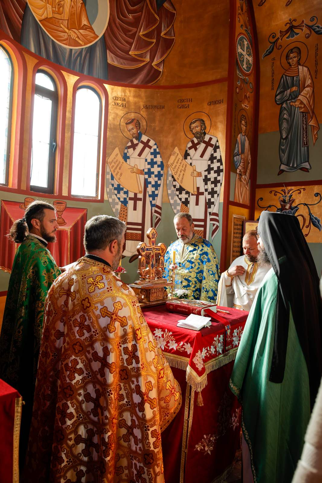 Сутрадан, Светом Литургијом је началствовао јеромонах Авакум уз саслуживање протојереја Звонка Рацића, протонамесника Александра Суботића, јереја Дејана Радојевића, јереја Ивана Босића и јерођакона Василија Старовлаха. Литургијском сабрању су допринели јерођакон Арон (Мацановић) и вероучитељ Никола Гавриловић за певницом.