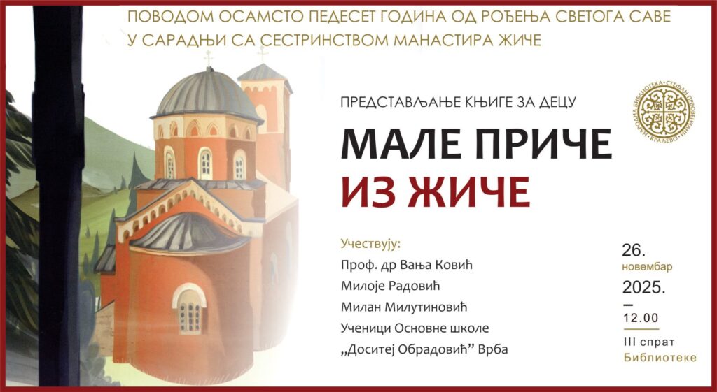 Најава: Краљевачка библиотека 26.11. у 12.00, Представљање књиге за децу “Мале приче из Жиче“
