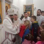 У храму препуном народа сваког узраста, Владика је, у складу са данашњим празником, беседио о човеку као икони Божијој.
