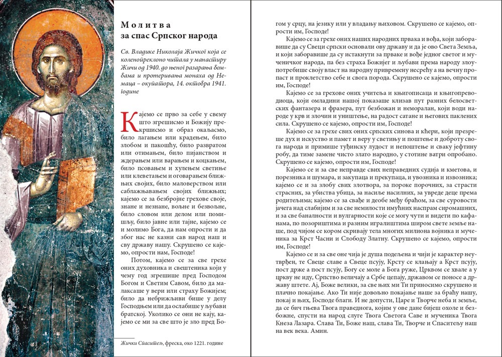 Сагледавши пометњу и целокупно стање у нашем светосавском народу за који смо пред Богом као пастири словесног стада Христовог одговорни, Епархијски савет на челу са Митрополитом жичким донео је одлуку да се од данас па надаље, у градским Храмовима и манастирима Епархије жичке, на вечерњем богослужењу, чита Молитва за спас Српског народа Светог Владике Николаја Жичког.