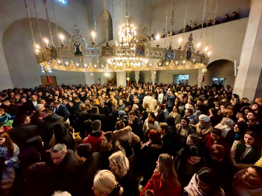 Његова Светост Патријарх српски г. Порфирије началствовао је 26. новембра 2023. године, на празник Светог Јована Златоустог, светом Архијерејском Литургијом у цркви Светог Саве у Фочи.