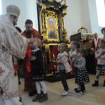 Литургијско сабрање продужено је и укрепљењем за трпезом љубави, уз пријатан и увек поучан очински разговор Епископа Јустина, Његовог свештенства и верног народа.